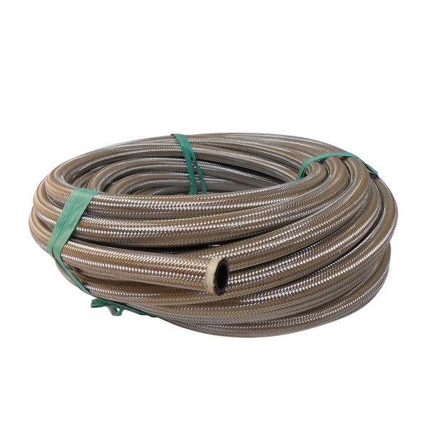 Mangueira de Borracha com Malha de Aço Inoxidável compatível com conexões 16AN / AN16, fabricado em tubo de borracha sem costura, resistente ao óleo, diesel, gasolina, alcool e metanol.